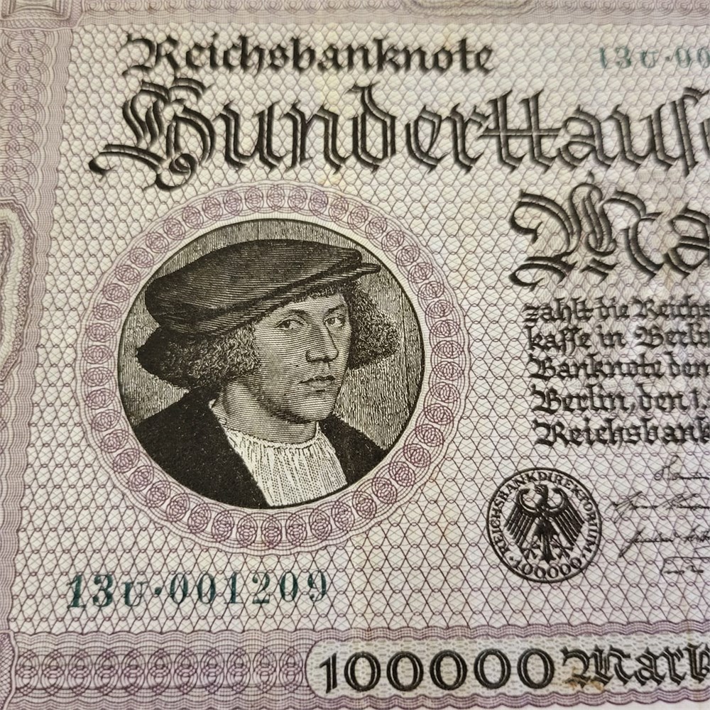 Antique 1923 German Germany REICHSBANKNOTE 100000mark bank note paper money fine View Watchlist >