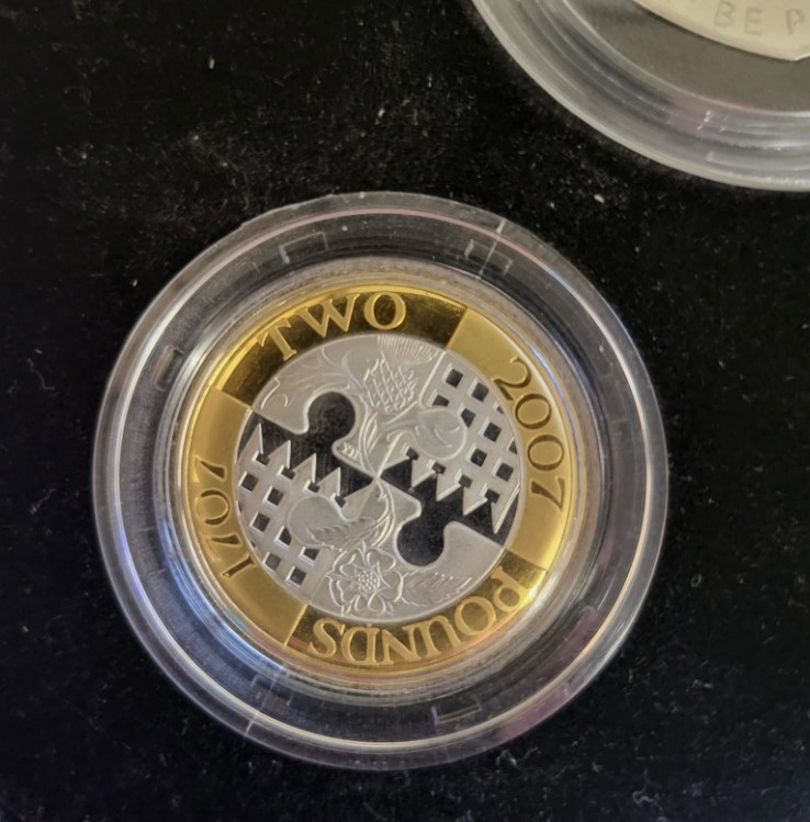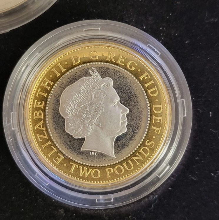 Reverse designs include Diamond Wedding Crown, Act of Union £2 and Millenium Bridge £1