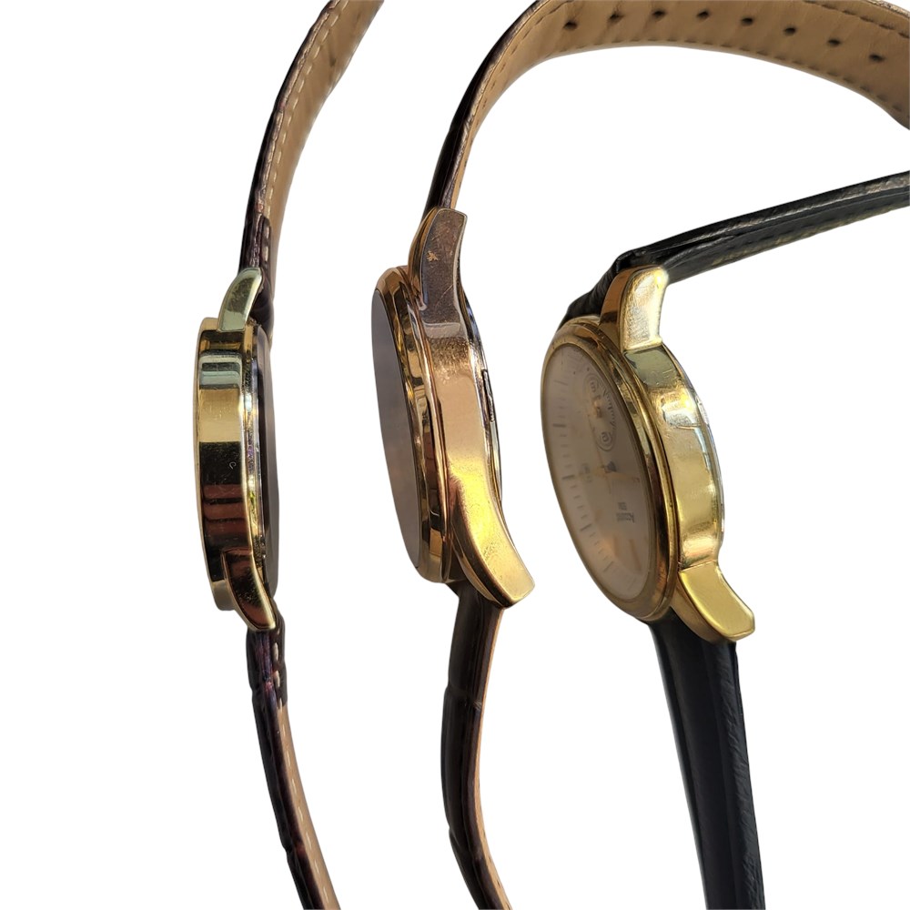 - Case / Dial - Gold-plated case and gold-tone dial / stainless steel back