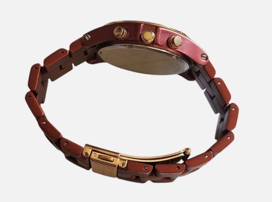 - Metallic red and gold link bracelet to fit 17cm wrist